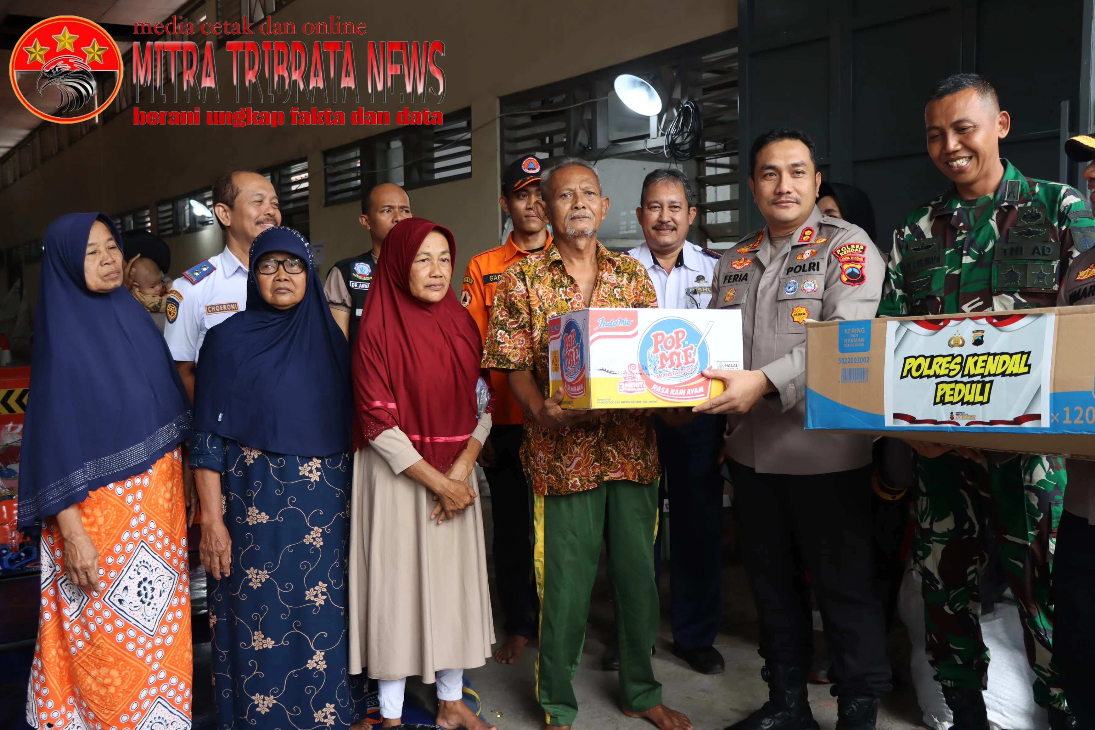 Kapolres Kendal menyerahkan bantuan sosial kepada para korban banjir yang meliputi mie cup sebanyak 50 dus, mie instan sebanyak 50 dus, pembalut sebanyak 5 dus, popok bayi sebanyak 8 dus, susu kotak sebanyak 50 dus, dan air mineral sebanyak 20 dus.